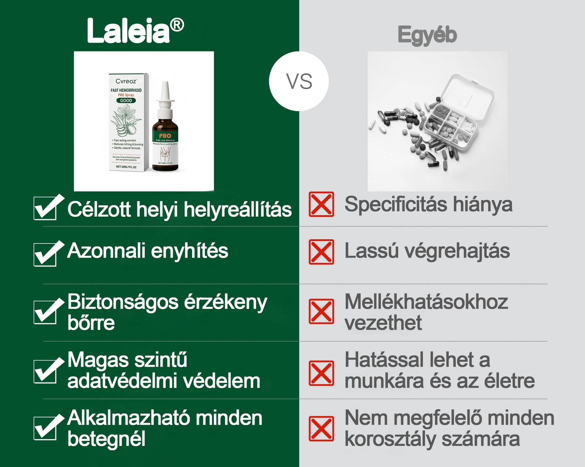 Íme a Laleia® Rapid-Acting Herbal Hemorrhoid Spray Pro egyedülálló előnyei: